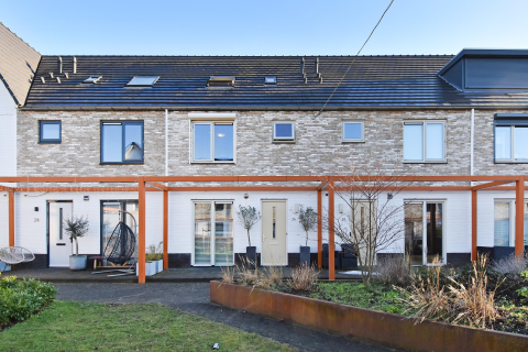 Indeling: Begane grond: Entree/hal met toegang tot de berging en meterkast (13 groepen, 2x aardlekschakelaar en hoofdschakelaar). Open keuken met L-vormige keukopstelling voorzien van spoelunit, inductie kookplaat, afzuigkap, combi magnetron (los) en koel-/vriescombinatie. L-vormige lichte ruime woonkamer met toegang tot de tuin. Portaal met trapopgang. Geheel betegelde toiletruimte net hangend toilet en mechanische ventilatie. De gehele begane grond is voorzien van een pvc laminaat vloer en spuitwerk wandafwerking.